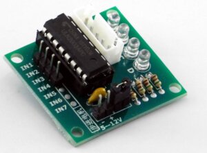 The ULN2003 is a high-voltage, high-current Darlington transistor array. It is designed for use in general-purpose switching and driving applications. ULN2003 stepper motor driver chip is an integrated circuit that is used to control the function of a stepper motor. chip is designed to provide the required power and control signals to a stepper motor to deliver exact movements.
