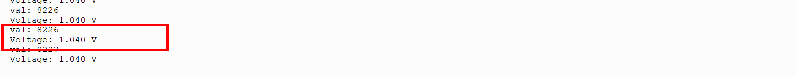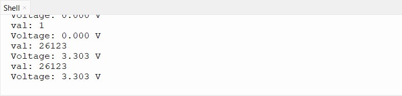You will get a measured voltage value on the shell console. The read voltage is a maximum of 3.3V. and min voltage is 0V.