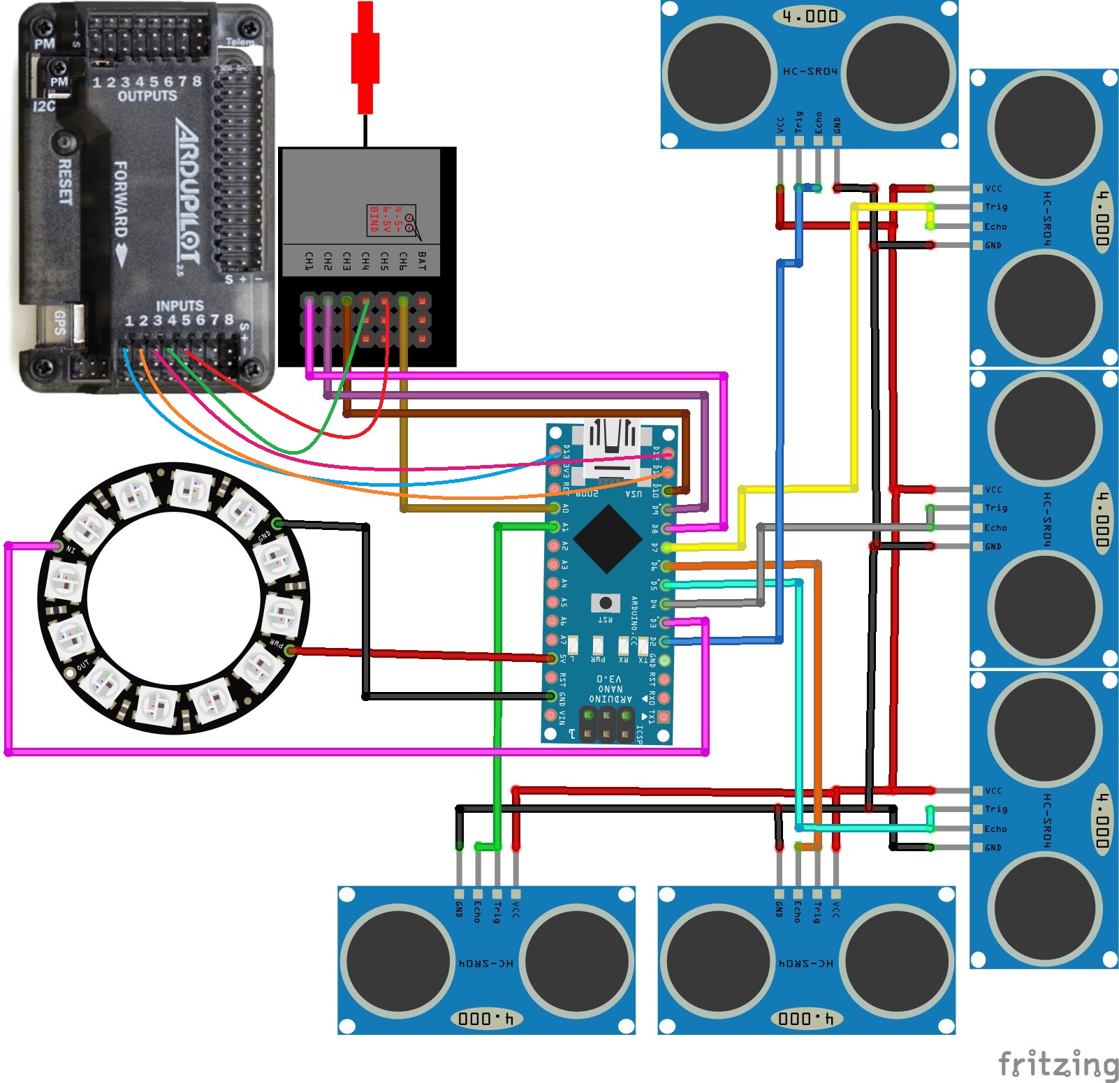 First, download the schematic diagram. The most important thing is any mistakes in the connection may damage the Arduino board. Connect the Sensors, Arduino, Flight controller and RC receiver. Check and double-check the connections.