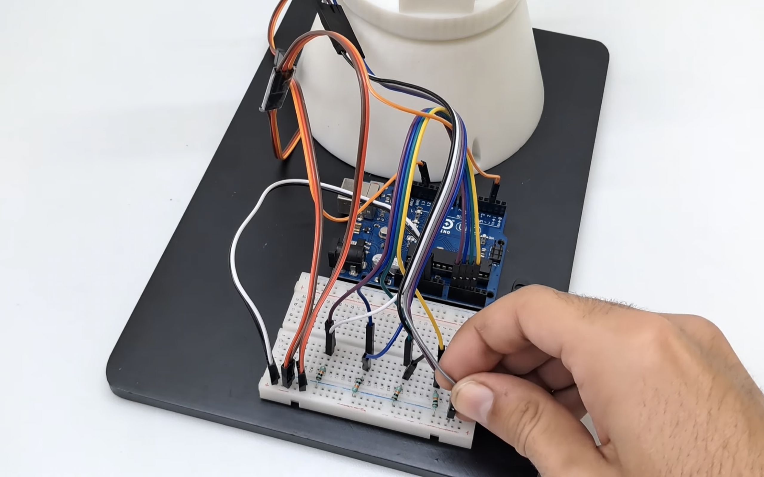 - Horizontal Servo (D2) → Digital Pin 2 on Arduino.
