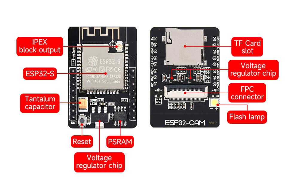 The ESP32-CAM module is a small-size camera module that integrates the ESP32-s chip, it has an OV2640 camera, GPIO pins to connect peripherals like sensors, motors, etc., and a micro SD card slot. It is a low-cost and easy-to-use solution for DIY makers who want to build projects with image or video abilities.
