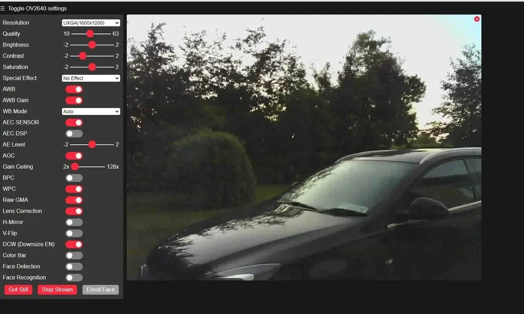 - OV2640 camera with a resolution of up to 2 megapixels