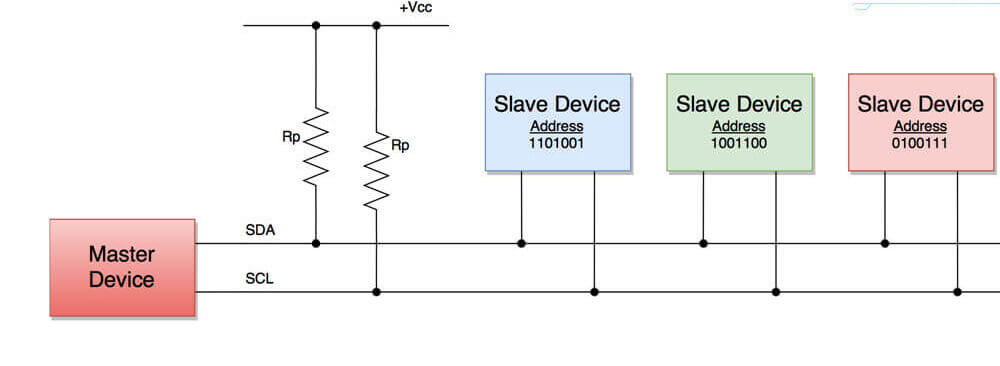 The I2C network is an advanced level of communication which is support multiple masters and multiple slaves as well. It complies with each slave device connected to the same I2C bus, each slave device is physically having a permanent 7-bit unique address.