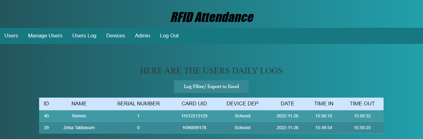 The website – coded in PHP – has a database that registers the attendance of users including all the details like incoming, and outgoing timings and personal information. The data can also be downloaded in Excel sheet format.