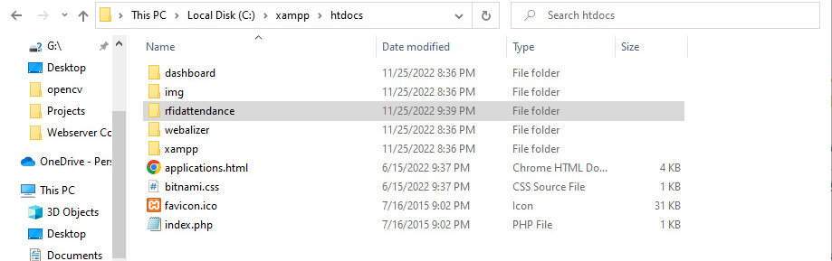 - Paste the folder in C:\>XAMPP->htdocs->rfidattendance