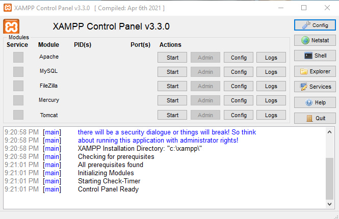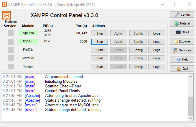 After installing XAMPP, please activate the xamppapache/mysql services from the XAMPP management panel