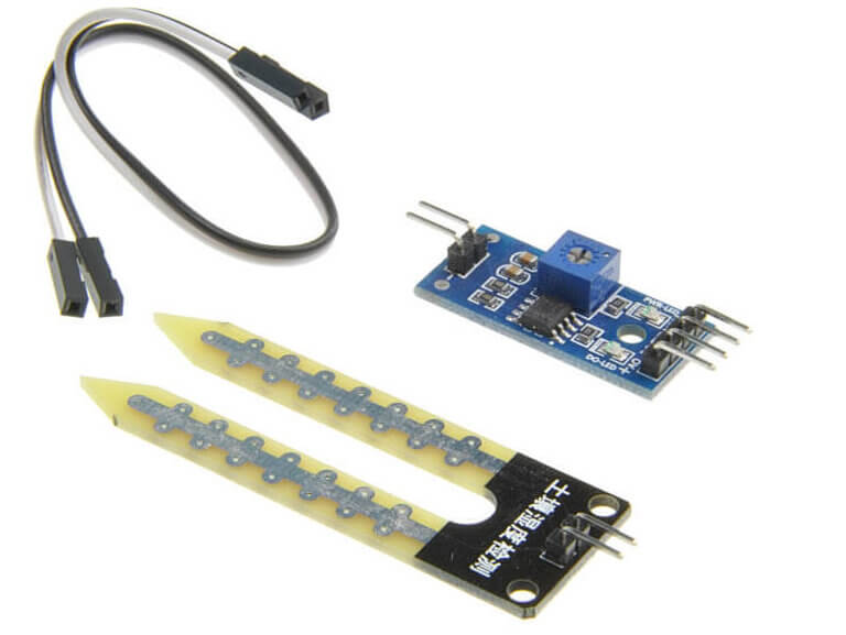 This moisture sensor can be used to measure the moisture content of the soil. By using this sensor, you can determine if your plants are getting enough water. Moisture sensors are used in a variety of applications, including weather monitoring, agricultural irrigation, and building moisture control.